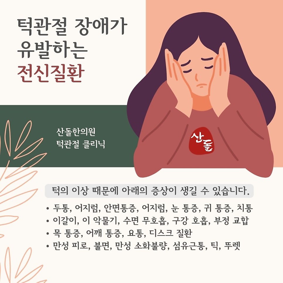 세종시 턱관절 장애가 유발하는 전신 질환 턱관절 장애는 많은 사람들이 경험하는 고통스러운 증상 중 하나입니다. 세종시에서도 턱관절 장애로 투병하고 있는